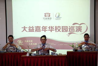 11月6日,由学校团委和大益茶业集团共同主办,新葡萄8883官网AMG大益爱心茶室承办的“大益嘉年华•公益校园行”中日茶道巡演活动在新葡萄官网青年中心举行。大益爱心基金会、大益茶道院代表,中、日两国茶道精英,各行业的企业家、各界爱心人士及新葡萄官网师生共400多人参加了本次活动。