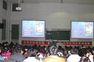 李老师围绕当今大学生创业现状和云南省社会状况讲解了大学生应如何转变观念,积极参与创业,有针对性的对同学们进行指导,讲座现场掌声不断。