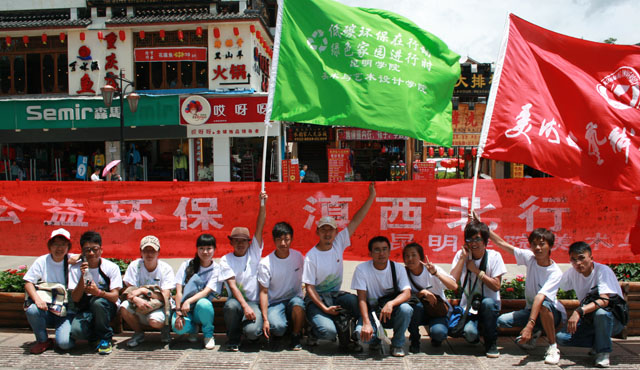 随后,师生们又在丽江古城进行了捡拾垃圾的环保宣传活动,用自己的实际行动向过往游客进行环保宣传,以期增强大家的环保意识。