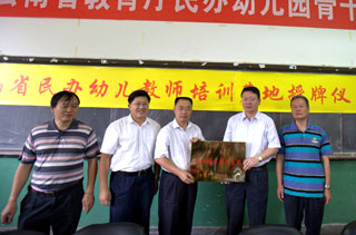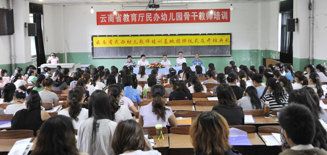 省教育厅高度重视民办幼儿园师资培训工作,并将培训工作落到实处,将此次培训任务交给具有近30年学前教育办学经验的新葡萄8883官网AMG教师教育学院。会上教育厅副厅长张之政向新葡萄官网授予云南省民办幼儿园师资培训基地的牌匾,并作了讲话。他阐释了发展民办幼儿教育的重要性,并向与会人员介绍了我省近期民办教育发展规划。新葡萄官网陈世波校长对与会嘉宾及参加培训的教师的到来表示热烈欢迎,同时对省教育厅及诸多民办幼儿园对新葡萄官网培训质量的信任表示衷心的感谢。新葡萄8883官网AMG教师教育学院相信凭借自身规范的管理、严谨认真的工作态度及过硬的专业素养,能够按质按量完成省教育厅交办的培训任务,并将结合当前新的教育发展形势,努力尝试探索一条教师培训方面的创新路线。