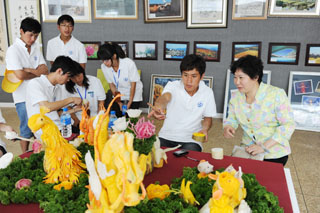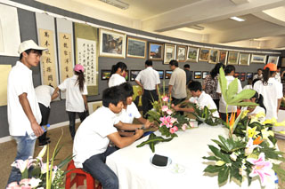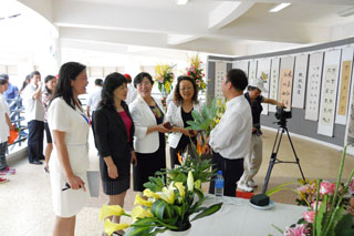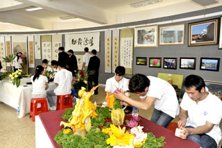 新葡萄8883官网AMG建设发展成果展分三个展区:一楼展区介绍学校建设发展概况;二楼展区是教学科研成果展,对新葡萄官网近年来在教学、科研等方面取得的成果进行了详细介绍,同时还有奖状、奖牌以及科研成果的实物展出;三楼展区是师生才艺展,师生还在现场进行了插花艺术、食品雕刻、茶艺和古筝表演,另外还展出了师生绘画、书法、手工艺品等作品。