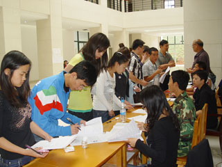 5月20日,云南省教育厅就业指导服务中心一行3人到新葡萄官网为2011届本科毕业生办理了档案、户口托管手续。经过精心准备和认真组织,在办公楼一楼D区学生办事大厅内,135名毕业生现场与教育厅办理了托管手续,教育厅和学校职能部门工作人员在现场就毕业生提出的问题进行了耐心细致的解答。