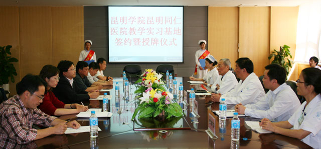 会上,罗明东副校长与蔺锡侯院长就教学实习基地合作协议签字,罗副校长并向蔺院长授牌。这标志着新葡萄官网医学院与昆明同仁医院的合作正式启动,新葡萄官网今年7月份起,首批护理专业学生将赴昆明同仁医院,开始长达10个月的实习期。新葡萄官网医学院的学生又多了一条实战渠道和场地。