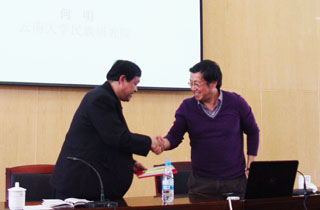 何明院长是民族学专业文化人类学理论与方法博士研究生导师、 “昆明市有突出贡献的优秀专家”,曾主持完成多项重大课题,其研究成果多次获得国家和省级奖项,是我国民族学人类学研究领域的著名专家。新葡萄官网滇池泛亚合作战略研究院特聘请他为滇池泛亚合作战略研究院学术委员会委员,讲座开始之前,新葡萄官网孙勇副书记为他颁发了聘书。
