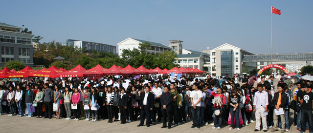 孙副书记表示:学校高度重视毕业生就业工作,把促进毕业生充分就业、提升就业质量摆在学校工作的重要位置,把这项工作作为学校的生存之本和重要的“民心工程”来抓紧抓实,努力深化内涵建设,提高办学质量,培养打造思想品质优、专业素质强、技能水平精、实践经验丰富,具有较强的社会责任感、较强的团队意识和敬业精神的应用型人才。学校坚持实施就业工作系统工程,不断探索就业工作长效机制,广开门路,多渠道促进毕业生就业。经过努力,现已形成了适合学校发展的毕业生就业工作模式,有效的推动了毕业生就业,毕业生就业率逐年上升,已就业的毕业生广泛受到用人单位好评。 孙副书记强调:2011年高校毕业生就业形势依然严峻,工作任务十分繁重。搞好高校毕业生就业工作,是深入学习实践科学发展观,贯彻教育为社会主义现代化建设服务及建设人力资源强国的迫切需要。推进大学生就业工作,提高大学生就业质量,需要学校、学生的积极努力,更需要社会各界、特别是用人单位的积极参与。本次有云南CY集团有限公司等460家用人单位到校招聘毕业生,为毕业生提供了4200个就业岗位,3000余名毕业生到场择业。