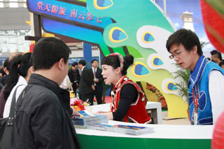 由国家旅游局主办的2011中国国内旅游交易会于4月15日至17日在西安曲江国际会展中心举办。为开拓国内旅游市场,加大旅游宣传促销力度,加强与西部各省区旅游界的交流与合作,同时为了更好地展示云南旅游形象,云南省旅游局特邀2010年云南省七彩云南杯导游大赛金牌导游、新葡萄官网旅游学院教师董芸随同云南展团前往西安,参与云南展馆的展示、咨询、旅游宣传等工作。