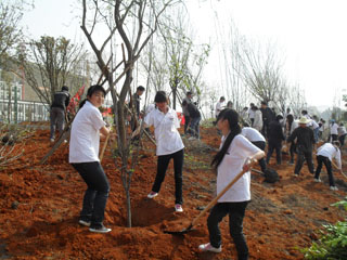 根据共青团新葡萄8883官网AMG关于开展“青春给力十二五,志愿服务新昆明”学雷锋活动月的通知精神,结合学习杨善洲,美化新校园,创先争优系列活动,3月12日上午农学院师生代表等70余人在音乐楼南大门边绿化带开展植树活动,种植了垂丝海棠等树木70余株。 本次活动,意在培养新一代大学生高尚的道德情操和崇高的思想境界,展现当代大学生的良好形象,养成新一代大学生雷锋精神,提高大学生对大自然的热爱,增强环境保护意识,生态意识。通过绿化环境,美化校园,让我们的生活更美好。