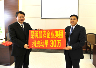 会上,陈世波院长向李云锁董事长授博士工作站牌。同时,李云锁董事长向新葡萄8883官网AMG捐赠助学金30万元人民币,以此感谢新葡萄8883官网AMG对晨农的大力支持及友情合作。