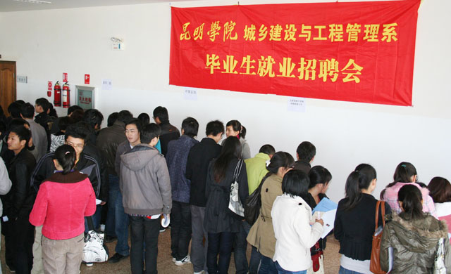 12月23日,中铁一局集团公司、中策装饰公司、昆钢力信钢结构公司、云南官房地基基础公司、云南金芒果装饰公司、昆明市二建司等十三家单位应邀参加城建系2011届毕业生第三场校园招聘会,招聘会共提供就业岗位270个。
