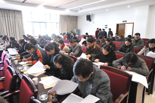 2010年12月31日,云南省高校推进惩治和预防腐败体系建设暨党风廉政建设责任制及领导班子和领导干部检查考核组第五组一行12人,在组长省教育厅副厅长邹平、副组长保山学院党委副书记杨耀程的带领下,对我院进行2010年度落实惩治和预防腐败体系建设暨党风廉政建设责任制检查考核、领导班子和领导干部年度考核及干部选拔工作“一报告两评议”考核。我院领导班子全体成员,中层正职领导干部(含主持部门工作的副职领导干部),近三年退休的院级老领导,部分党代表、人大代表、政协委员,民主党派基层组织主要负责人,教职工代表140余人参加了检查考核汇报会。 汇报会由我院党委副书记、院长陈世波主持,他代表新葡萄8883官网AMG党政领导班子、全体干部师生对省委高校工委第五考核组的到来表示热烈欢迎。陈院长说,这次检查考核会,是根据《中共云南省委高校工委关于开展2010年度高校推进惩治和预防腐败体系建设暨党风廉政建设责任制检查考核及领导班子和领导干部考核工作的通知》的要求召开的,是省高工委对我院2010年度落实惩治和预防腐败体系建设暨党风廉政建设责任制检查考核、领导班子和领导干部年度考核及干部选拔工作“一报告两评议”进行的年度检查考核。