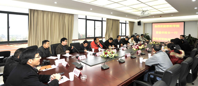 12月7日上午,邵阳学院曹健华院长率11个基层教学系(部)主任一行12人到我学院进行访问交流。我院罗明东副院长,院办、教务处、科研处、后勤处、财务处等部门负责人在办公楼3楼会议室,热情接待曹健华院长一行并进行交流座谈。