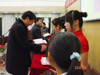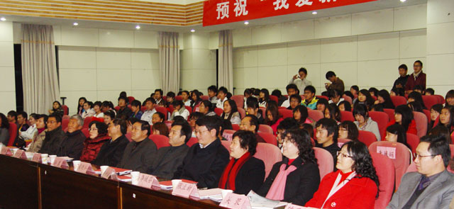 | 12月9日晚,惟行楼1501报告厅欢歌笑语,座无虚席,“我爱新校园”征文颁奖晚会在此举行。学院领导梁晓谷书记、陈世波院长、孙勇副书记、李媛芬副书记以及党委宣传部部长张立新、统战部长张云权、教务处长郝旭霞、学生处长吴蓉、党办副主任陈开祥、文新系党总支书记兼系主任桂彦南、副主任詹七一、副书记姜晓霞、团委副书记钱海鼎、王海艳等各部门领导与200多名师生一起饶有兴致地观看了同学们的诗文朗诵,并给获奖者颁奖。