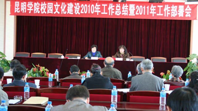 根据院党委关于校园文化建设工作的要求,经学院主要领导同意,我院于12月14日下午,在办公楼502会议室召开“新葡萄8883官网AMG校园文化建设2010年工作总结暨2011年工作部署会”。各教学单位分管精神文明建设和校园文化建设的领导,宣传部、工会、团委、教务处、学生处、科研处、现代教育中心、后勤处的主要领导,新校园主要建筑、景观、道路命名名称被采用者共计60余人参加了会议。学院党委副书记李媛芬出席会议并作重要讲话,宣传部部长张立新主持会议。 会议先由张立新部长对今年学院开展的新校园主要建筑、景观、道路命名广泛征稿、汇集梳理、分析研讨,校训、校徽、校歌征集提炼,命名名称、校训的审定、采用,命名名称、校训、校园路牌、导示牌制作安装等工作情况,进行了全面通报与总结。