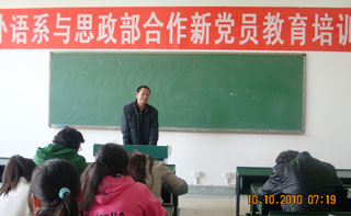 随后外语系2010年新党员教育培训班正式开班。此次培训班是为适应建设学习型党组织的需要,按照学院党委关于印发《新葡萄8883官网AMG2009—2013年党员教育培训工作实施意见》的要求,实施学院新党员培训工程而举办的。