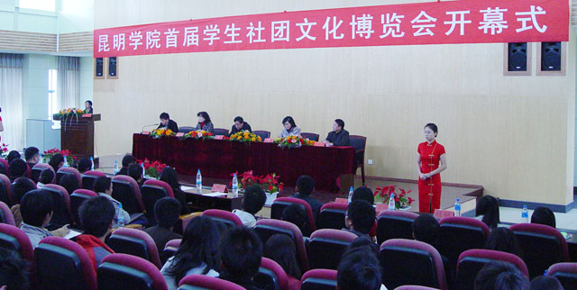 我院党委副书记孙勇、机关党总支书记梁艳萍、党委宣传部部长张立新、保卫处处长方永昆、团委书记何昊宸、团委副书记钱海鼎、王海艳等领导出席了开幕式。云南省在昆10多所高校社团联合会代表以及我院各社团指导老师、各系团总支书记、学生会主席、学生社团联合会成员、各社团代表200余人参加了此次开幕式。开幕式由团委书记何昊宸主持。