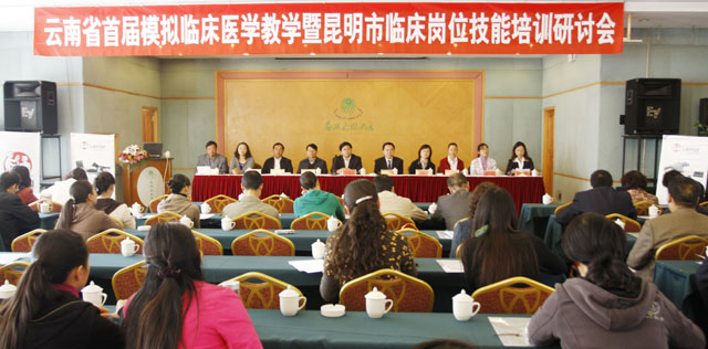 我院医学院与昆明市护理学会、云南省中等医学教育研究室共同主办了云南省首届医学模拟教学暨昆明市临床岗位技能培训研讨会,会议于2010年10月23日开幕,由医学院主持工作副院长余珊致开幕词,新葡萄8883官网AMG主管教学副院长罗明东出席会议并讲话。