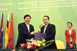 由中国教育部和云南省政府主办,云南省教育厅和云南大学承办的“东亚峰会高等教育合作论坛”于10月13日至15日在昆明召开。来自中国、文莱、柬埔寨等10多个国家的教育官员、大学校长、驻华使节出席大会。我院罗明东副院长代表新葡萄8883官网AMG参加本次论坛。
