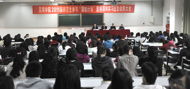 10月19日下午,新葡萄8883官网AMG“2011届师范生参与‘国培计划’顶岗实习出发动员大会”隆重召开。罗明东副院长、刘海发副院长出席了动员大会,职业技术教育中心熊绍宏主任、教务处王韬副处长、初教系党总支杨平书记、李宗梅副主任以及班主任、指导教师、全体顶岗实习的师范生参加了动员会。