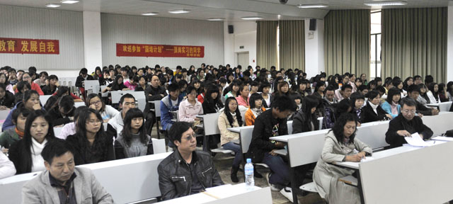 熊绍宏主任对“国培计划”的宗旨、意义、目的都做了较详细的介绍,使同学们更明确了参与这次行动的重要性。学生代表唐霖在会上发言,她代表258名同学向学院领导和老师表示决心,一定要做到谦虚、勤奋,不辜负学院的重托,到实习结束时,满载收获而归。