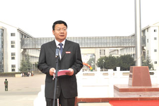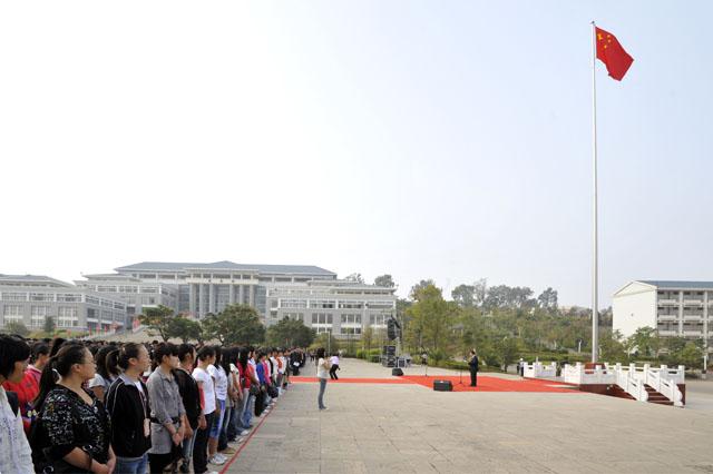 学院党委书记梁晓谷在升旗仪式上作了重要讲话。梁书记饱含深情地回顾了学院艰辛的办学历史,展望了学院的美好未来,表达了全院师生对祖国的热爱、对教育事业发展的企盼,并对广大师生提出了殷切希望。他说:新葡萄8883官网AMG作为本科院校,建院时间不长;但追溯办学历史,最早可到1905年云南省高等学堂师范部。寻着历史的脉络,我们可以感受到新葡萄8883官网AMG源远流长的历史、兼容并蓄的文化和坚忍不拔的精神。在我们的百年办学中,培养了许多优秀杰出的人才。百年办学赋予学院深厚的历史和文化内涵,聂耳等杰出校友激励我们开拓进取、自强自立的奋斗精神!回首过去,在十分艰难的办学环境和艰苦的办学条件下,全院师生员工自强自立、坚忍不拔,取得了超常规、跨越式发展的累累硕果;展望未来,我们对建设“国内知名、省内一流”的本科大学充满信心!今天,集合在新校园高高飘扬的五星红旗下,我们深知为国家建设、为民族振兴肩负的历史责任。我相信,每一位教师都会忠诚党的教育事业,教书育人,为人师表;每一位同学都会树立报效祖国的远大理想,勤勉自励,刻苦学习。面对学院内涵建设这一长期而艰巨的任务,让我们自觉遵循“明德至善,知行利物”的校训,坚定信念,追求真理,修德治学,勤于实践,为新葡萄8883官网AMG的建设发展而发奋努力,不负我们在庄严国旗下的神圣誓言!
