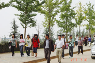 8月30日是新葡萄8883官网AMG各院系2007、2008、2009级本专科学生在新校园正式上课的第一天。一大早,住在润泽苑、澄明苑的各院系学生纷纷赶往上课地点,院领导、教务处、保卫处、宣传部等相关职能部门的领导、干部及各院系党政领导、辅导员、班主任也提早赶到各楼群入口,引导、招呼学生,维持秩序。各院系当日早上有课的老师也都提前赶到新校园,找到自己上课的教室,提前等候学生到课。
