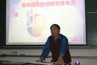在整个讲座过程中,董学畅教授用他丰富的教学经验和人生阅历,深入浅出地阐释了创新思维,为同学们的创新活动做了思想和方法上的培训,打消了同学们对科研活动的疑问,解决了同学从事创新活动的矛盾心理,整场讲座气氛轻松活跃,董教授生动风趣的语言,引得同学们的阵阵掌声。