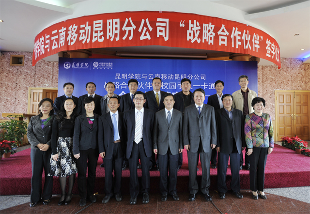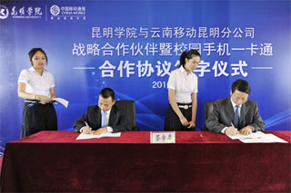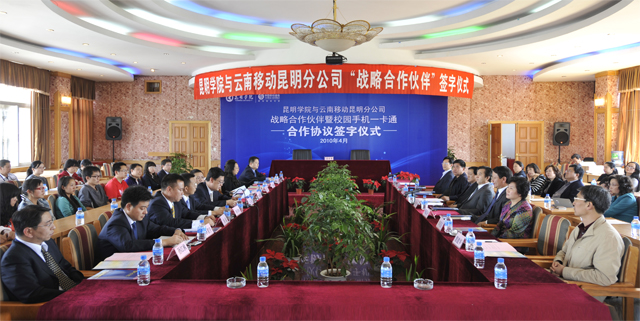 4月28日下午,新葡萄8883官网AMG与云南移动昆明分公司“战略合作伙伴”暨校园手机一卡通签字仪式在我院人民西路校区3号教学楼6楼多功能厅举行。