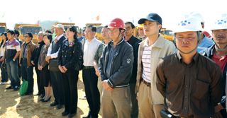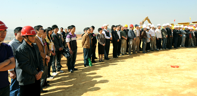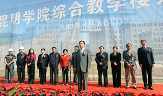 学院全体党政领导,惠丰公司董事长出席典礼,云南大学洋浦校区管委会主任罗红明、保卫处副处长汤静和新葡萄8883官网AMG部分职能部门负责人,教师、学生、民主党派代表共300余人参加奠基仪式。