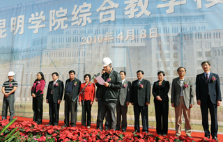 4月8日开工建设的综合教学楼面积为35719㎡,楼高9层,海拔1945米,长度300米,建成后可容纳在校学生近20000人,预计2011年 3月 投入使用。