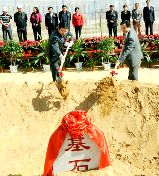 在吉祥欢快的鞭炮声中,梁晓谷书记、陈世波院长为奠基石培上第一锹土,学院党委副书记孙勇、李媛芬,副院长张寿国、熊晶、罗明东、董建华,惠丰公司董事长黄晓峰和学院各民主党派、教师、学生、中层干部代表也分别挥锹培土,大家共同参与、见证了新葡萄8883官网AMG发展史上这一激动、欣喜的时刻。