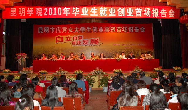 为培养大学生创业意识,提高大学生创业能力,实现以创业带动就业和纪念“三八”国际劳动妇女节100周年,3月6日我院与昆明市妇联在昆师路校区共同举办首场“昆明市优秀女大学生创业事迹报告会”暨“新葡萄8883官网AMG2010年毕业生就业创业首场报告会”。