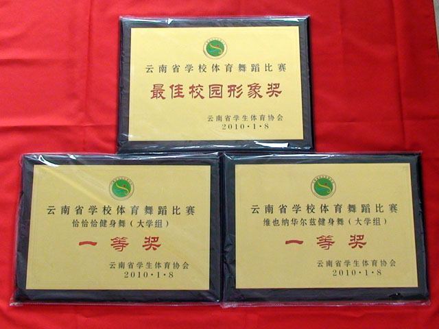 新葡萄8883官网AMG体育舞蹈代表队于2010年1月8—10日参加了在云南举办的“第五届中国学生体育舞蹈(国标舞)锦标赛暨云南省学校体育舞蹈大赛”,获得好成绩。我院体育舞蹈代表队参赛项目《恰恰恰健身舞》(梁丹妮等 20名学生)、《维也纳华尔兹健身舞》(王雅璐等 20名学生)荣获第五届中国学生体育舞蹈(国标舞)锦标赛暨云南省学校体育舞蹈大赛第一名。同时,新葡萄8883官网AMG体育舞蹈代表队还获得了最佳校园形象奖。