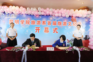 11月27日下午14:30,“新葡萄8883官网AMG旅游系首届旅游文化节开幕式”在人民西路校区三号教学楼六楼多功能厅隆重举行。参加此次开幕式的有新葡萄8883官网AMG梁晓谷书记、陈世波院长、孙勇副书记、熊晶、罗明东、刘海发副院长以及我院部分职能部门的领导,省、市旅游局的领导、旅游界部分企事业单位的代表、部分兄弟院校代表应邀参加了会议,旅游系师生代表列席了会议。
