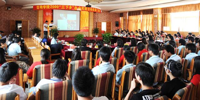 10月16日下午,院团委2009年“三下乡”社会实践活动成果汇报会在人民西路校区举行。团市委机关党总支书记王彦彦,团市委学校部部长栾丽华,学院党委宣传部张立新部长,教务处郝旭霞处长,机关党总支梁艳萍书记,保卫处方永昆副处长,学生处罗进副处长等出席了汇报会,会议由团委书记何昊宸主持。 我院本次“三下乡”根据党委宣传部、学生处、院团委联发的《关于开展新葡萄8883官网AMG2009年大学生暑期社会实践活动的通知》的文件精神,于7月上旬正式启动,历时7天。活动以“高扬爱国主义旗帜、服务科学发展大业”为主题,本着“讲求实效、就进就便、针对性强、辐射面广、安全第一”的原则,按照“全面动员、普遍参与、点面结合、重点突破”的要求,以系为单位,结合本系专业特色,学院共组织了6支志愿服务队到昆明周边县市区基层农村开展社会实践与志愿服务活动。 汇报会上,来自自机系、旅游系、生科系、经济系、计网系、政法系的老师和学生代表,分别对此次“三下乡”社会实践活动作了汇报与成果展示。各汇报系结合系部的专业特色,开展的实践活动形式多样、成果丰富,能够用理论指导实践,用调研成果服务农村、服务社会、服务昆明的实践活动。 党委宣传部部长张立新代表学院活动领导小组讲话肯定:6个系的汇报都反映出了此次社会实践主题突出,准备充分,各系领导和相关老师高度重视,积极支持,责任心强,有的亲自带领学生到农村指导调研服务;各系结合专业特长开展科学发展观政策、普法、科普、环保宣传,进行家电维修、爱心捐赠、社会调研、参观访问、劳动体验、文体活动等,既充分认识社会和乡情,也找正自己的角色位置,以我所能服务社会,为今后发展积累经验,为学院服务地方经济发展,锻炼培养了师生干部,宣传展示了学院办学实力和育人水平,与地方建立良好合作关系,做出实绩。衷心感谢团市委领导和相关处室领导的关心支持,衷心感谢6支小分队的系领导、老师、同学的艰苦努力和辛勤奉献。 会上,团市委机关党总支书记王彦彦作了重要讲话。王书记对我院的“三下乡”社会实践工作给予了充分肯定,她指出,我院的“三下乡”社会实践活动准备充分、成果丰富,特别是通过这次活动让同学们了解了社情民意,倾听到了基层人民群众的心声,找到了奋斗和努力的方向,确实增强大学生服务社会、报效祖国责任感和使命感,发现问题、分析问题、并解决问题的能力得到了进一步的提高,砥砺了品格、磨练了意志、收获了真知、陶冶了情操、树立了理想。这次社会实践活动既是一次同学们了解社会、服务社会的尝试,更是一次理论与实践相结合的马克思主义的第二课堂。 此次“三下乡”社会实践活动是学院团委认真学习贯彻十七大精神,深入开展学习实践的科学发展观活动的重要举措,也是加强和改进大学生思想政治教育、帮助大学生在实践中深刻理解科学发展观重大意义、发挥大学生人才智力优势、服务新农村建设的有效途径。相信此次活动的开展,将为大学生体验农村、融入社会搭建平台,为我院团学工作的不断推进和现代新昆明建设贡献力量。