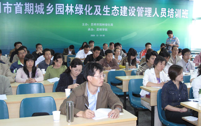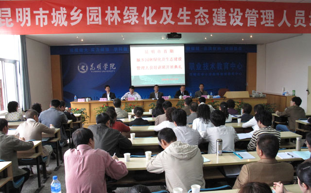 根据昆明市委、市政府提出“建设生态昆明绿色家园”的要求及昆明市“2009年城乡园林绿化及生态建设工作现场会”精神,经市政府批准,由新葡萄8883官网AMG与昆明市园林绿化局联合举办的“昆明市城乡园林绿化及生态建设管理人员培训班”开班仪式,于10月19日在我院昆师路校区举行。我院党委书记梁晓谷,昆明市政府副秘书长周峰越,市园林绿化局局长张家仁、副局长汪天祥等领导出席开班仪式。开班仪式由我院刘海发副院长主持。 参加本次开班仪式的学员有来自五华、盘龙、官渡、西山四个区和经济技术开发区、高新开发区、旅游度假区60余人从事林绿化管理一线工作人员。该培训将分期分批对全市范围内从事园林绿化建设和管理部门的企、事业从业人员进行短期与长期相结合的基础业务培训。 培训旨在努力提升我市城乡园林绿化管理人员的业务素质和管理水平,适应我市“建设生态昆明、绿色家园”的目标要求,把昆明建设成为“森林式、园林化、环保型、可持续发展的高原湖滨生态城市”。这既是市政府贯彻落实科学发展观的具体要求,也是我院发挥教学科研优势,积极为昆明谋求经济社会跨越大发展做贡献的现实需要。 梁书记出席开班仪式并作讲话。梁书记从贯彻昆明市2009年城乡园林绿化及生态建设工作现场会的精神、昆明市城乡园林绿化的基本情况和举办本次培训班的背景等方面,阐述了举办城乡园林绿化及生态建设管理人员培训的重要意义和作用。同时,梁书记向学员们提出了三点希望:一是希望认真对待培训工作,带着问题、善于思考,安心、认真听好每一堂课;二是希望严格学习纪律,做到学习有考核、管理有制度;三是希望用学到的理论指导实际工作,在岗位实践中不断向市园林绿化局和我院职教中心反馈宝贵建议,提出希望教师教些什么?怎么教的要求。 周副秘书长受陈勇副市长的委托代表市政府向首期城乡园林绿化及生态建设管理人员培训开班表示祝贺。他强调:今年昆明市城乡园林绿化及生态建设的主要任务是突出总量扩张和质量提升“两个重点”。他希望各位学员珍惜学习机会,培训结束后回到工作岗位上,一定要按市委、市政府的要求,按照昆明市城乡园林绿化的总体规划和工作部署,精心组织,真抓实干,充分发挥园林绿化管理人员的骨干作用为全市经济社会又好又快发展作出新的更大的贡献! 开班仪式上,张局长从我市园林绿化发展状况和个人体会等方面谈了加强城乡园林绿化及生态建设管理人员培训的必要性。他透露,今后昆明市的每一名园林绿化管理人员都必须经过培训考核,持证上岗。 开班仪式结束后,与会领导和全体受训学员合影留念。