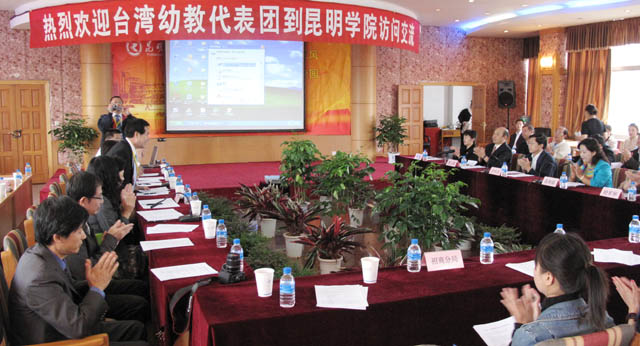 研讨会由昆明市台办主任段俐娟主持。昆明市教育局领导发言首先对台湾幼教联合总会的到来表示诚挚的欢迎,然后就昆明的教育大背景作了较详细的介绍。接着新葡萄8883官网AMG罗明东副院长对新葡萄8883官网AMG的建院情况,院系专业设置,未来发展方向,特别是学前教育系的发展做了重要发言。学前教育系领导唐敏副主任主要针对新葡萄8883官网AMG学前教育系的办学历史、专业特色、科研能力、与昆明市各幼教机构的合作等台湾同行们感兴趣的问题,作了深入而细致的介绍。同时台湾幼教联合总会涂会长也把台湾的幼教发展现状等信息作了交流。