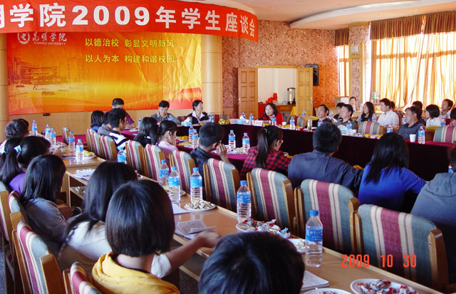 为期两天的新葡萄8883官网AMG2009学年学生座谈会于10月29日、10月30日分别在龙泉路校区、新迎路校区、人民西路校区(含昆师路校区学生)、体院路校区举行。我院孙勇副书记、熊晶副院长,院办、学生处、教务处、团委、保卫处、后勤处等学生工作指导委员会相关成员单位领导、各校区综合办以及城建系、美艺系等系部的相关负责人分别出席在各校区举行的学生座谈会,听取并现场解答了部分同学提出的意见和建议。参加此次学生座谈会的各系学生代表共计130余人。