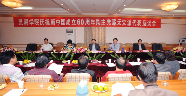 9月25日下午,我院举行庆祝新中国成立60周年暨迎中秋统战人士代表座谈会。学院党政领导、党办、统战部、组织部、院办等相关职能部门负责人与民主党派和无党派代表共聚一堂,重温60年来民主党派、无党派人士与中国共产党风雨同舟、肝胆相照的光辉历史,回顾国家、社会、学院建设改革发展历程,共叙学院今后改革建设发展大计。党委副书记、院长陈世波向大家介绍了学院发展情况,党委书记梁晓谷作了重要讲话,党委副书记李媛芬主持会议。