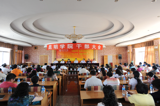 陈院长着重指出:日益激烈的市场竞争迫切要求学院加强内涵建设,加快提升核心竞争力。云南省深化改革、大力发展高等教育的有利形势和各级领导的重视支持,为学院加快发展提供了难得的机遇,内涵建设是提升学院核心竞争力的根本所在,发展是学院当前和今后最大的政治。我们必须提高认识,一鼓作气,开拓创新,闯出一条特色兴校之路。我们要统一思想,统筹规划,有序推进;要以育人为本,以“质量工程”建设为突破口,着力加强学科、专业和课程建设;要以应用研究和重大项目为重点,加快提升学院科研实力;要深化教育教学改革,提高教学质量和育人水平;要提升服务社会的职能,增强办学效益,扩大学院影响力。2009-2010学年是学院改革发展的关键一年,学院要全面实施战略转移,集中精力抓内涵建设,加快提升办学质量和水平,提升学院在国家高等教育体系中的地位和影响,提高学院对国家和区域经济社会发展和贡献率;要进一步抢抓机遇,争先进位,用好自主权,发挥主动性和创造性,进一步把学院“规模做大、实力做强、学科做全、专业做优、人才做壮、科研做精、品牌做响、校园做美”,争取各项工作取得新的更大突破。