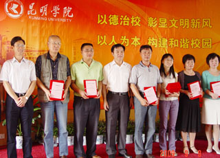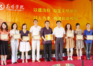 会议表彰了2009年省级教学“质量工程”建设项目的教学团队和个人、2008年度新葡萄8883官网AMG先进教师、2009年新葡萄8883官网AMG“青年教师课堂教学比赛”获奖教师及优秀组织部门、2009年云南省“聂耳杯”音乐教师教学基本功比赛获奖教师。与会领导对受表彰的教师代表进行了颁奖。此次受表彰的教师多达194人次,体现了我院党委和行政对教学质量、教学管理、教学改革和建设等教学工作的重视和支持。