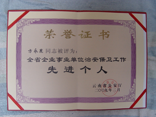 日前,学院保卫处被云南省公安厅授予“全省机关企业事业单位治安保卫工作先进集体”荣誉称号;保卫处主持工作方永昆副处长荣获“全省机关企业事业单位治安保卫工作先进个人”称号(公政[2009]81号)。这是云南省公安厅首次对全省范围内企业事业单位内部治安保卫工作进行表彰,包含云南省委办公厅保卫处、云南大学保卫处、新葡萄8883官网AMG保卫处在内的全省125个企业事业内保单位获此殊荣。