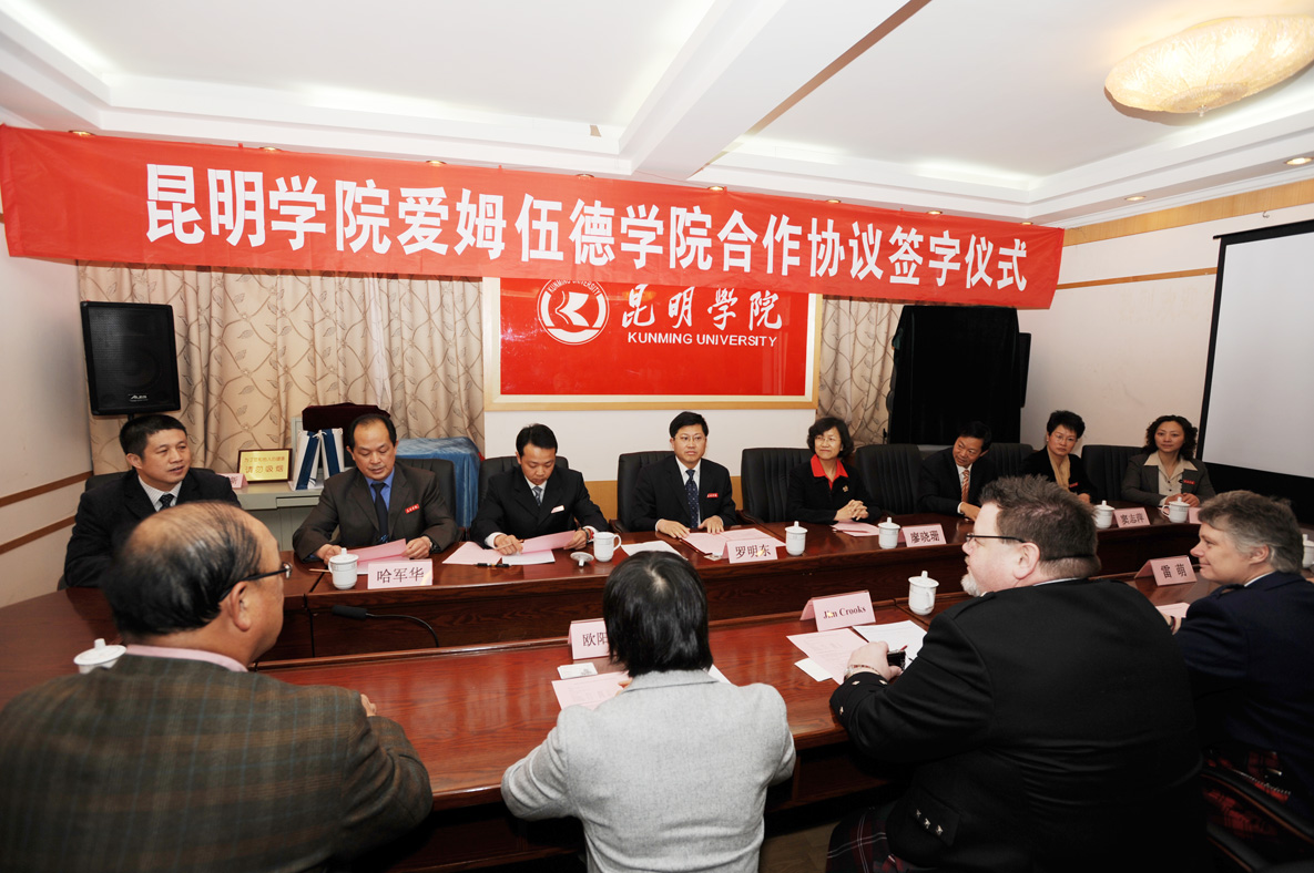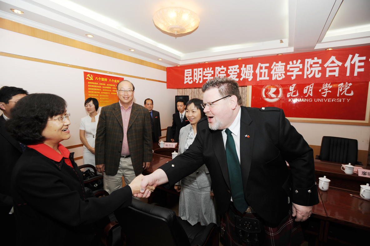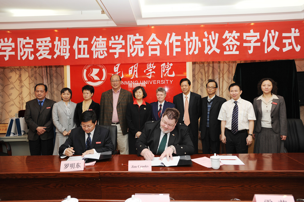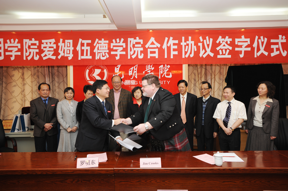 4月5日上午,英国苏格兰爱姆伍德学院与新葡萄8883官网AMG高尔夫教育合作协议签字仪式在我院举行。昆明市副市长廖晓珊女士、新葡萄8883官网AMG副院长罗明东教授博士、昆明市旅游局局长黄俊峰先生,苏格兰圣安德鲁斯爱姆伍德学院院长Jim Crooks先生、苏格兰圣安德鲁斯爱姆伍德学院国际交流中心主任Carol Borthwick女士、苏格兰——中国、亚太地区高尔夫教育合作项目总监欧阳艳凤女士、爱姆伍德中国办事处董事雷萌和我院旅游系、院办、对外交流合作处负责人参加了签字仪式。