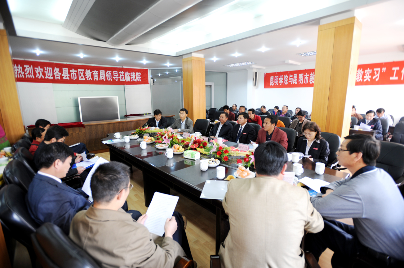 洽谈会期间,我院罗明东副院长、教务处、学生处、招就处、各系主要领导与出席参加洽谈会各单位领导进行了落实‘支教实习’协议座谈,座谈会由教务处副处长陈嘉主持。座谈会上,昆明市教育局组织人事处处长穆仁早就“支教实习”的意义作了发言,我院罗明东副院长就如何长期有效地开展“支教实习”工作作了指导性讲话,各县(市)区教育局领导对落实“支教实习”提出了意见和建议,并纷纷表示,积极支持我院工作,尤其是毕业生“支教实习”工作。
