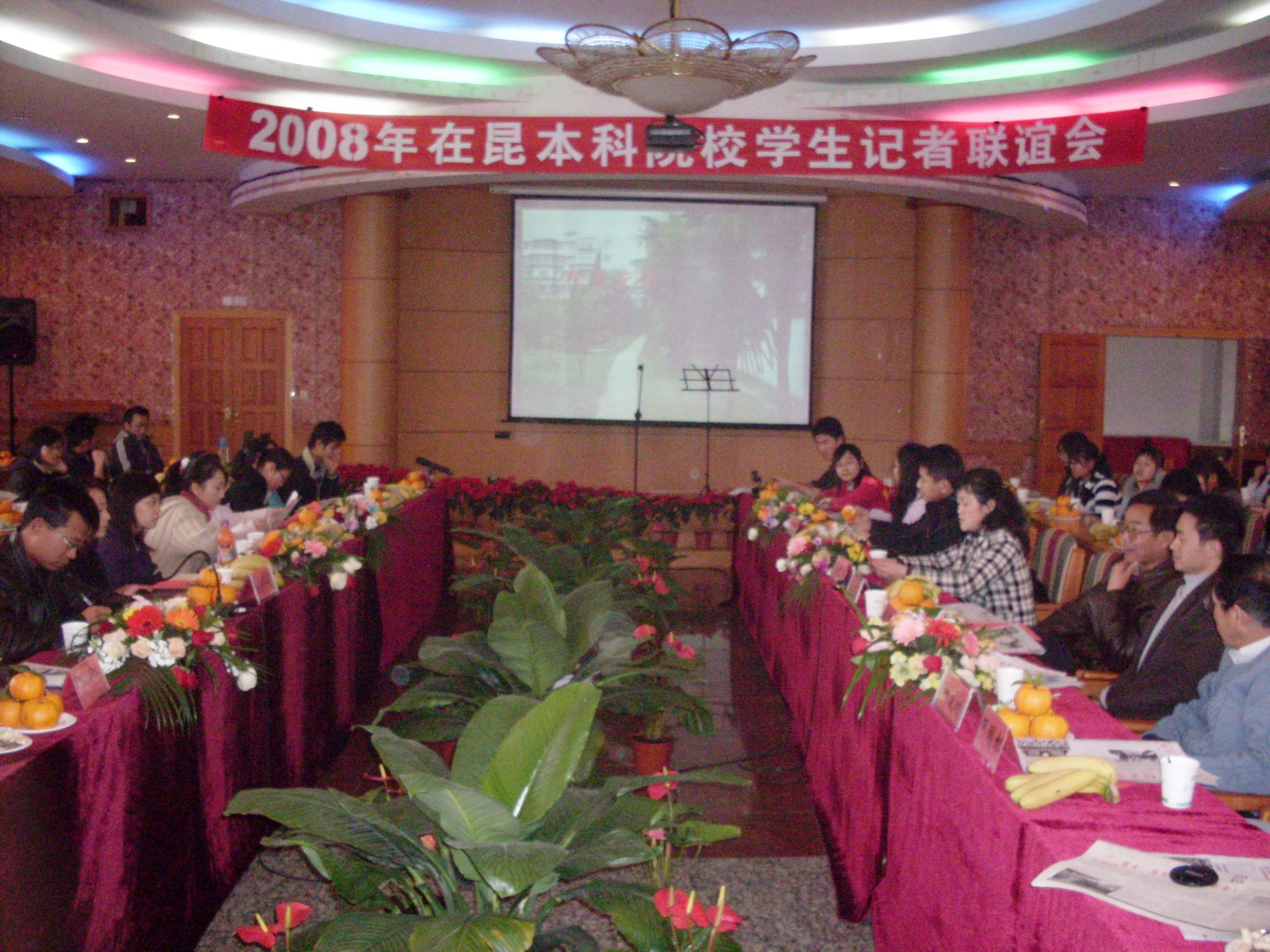12月21日下午3:00,由我院学生记者站、记者协会主办的“在昆部分本科院校学生记者联谊会”在我院人民西路校区举行。参加此次联谊会的有我院宣传部负责人梁艳萍、团委书记何俊、宣传部全体老师、我院记者站全体成员以及来自云南大学、云南师范大学、昆明医学院、云南财经大学、昆明理工大学、西南林学院等在昆本科院校的学生记者站负责老师和学生记者代表。