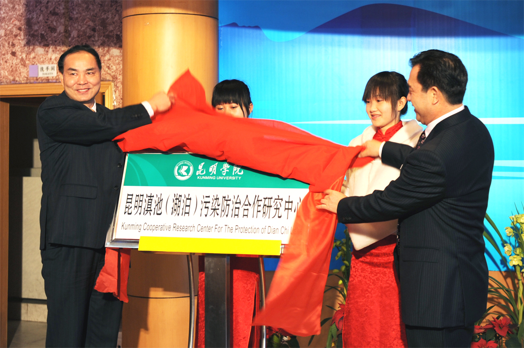 12月29日上午9点,昆明滇池(湖泊)污染防治合作研究中心(以下简称研究中心)揭牌仪式在我院举行。市委常委、常务副市长李文荣以及市环保局、市科技局、市科协、俊发集团、浩宏物流等单位和企业领导应邀出席。我院全体院领导、全体中层干部以及相关系部领导和工作人员参加了今天的揭牌仪式。仪式由熊晶副院长主持。