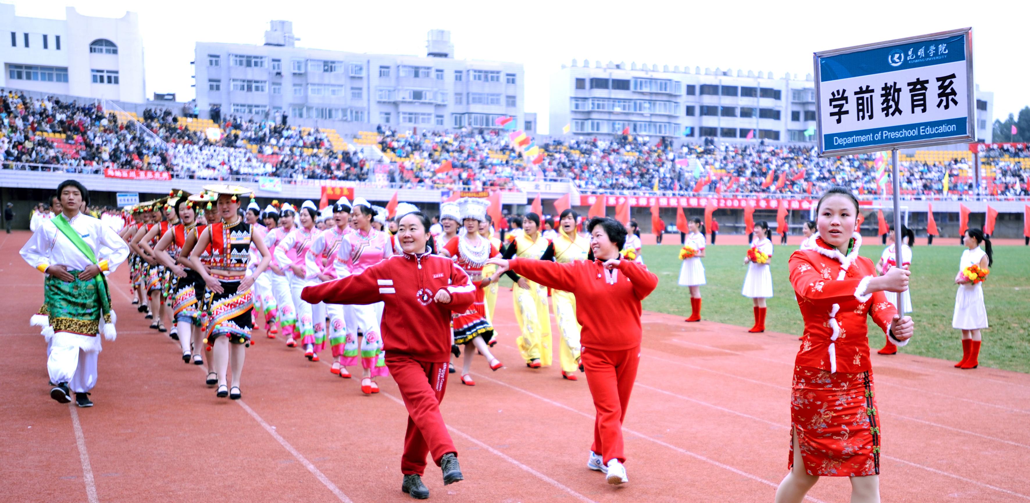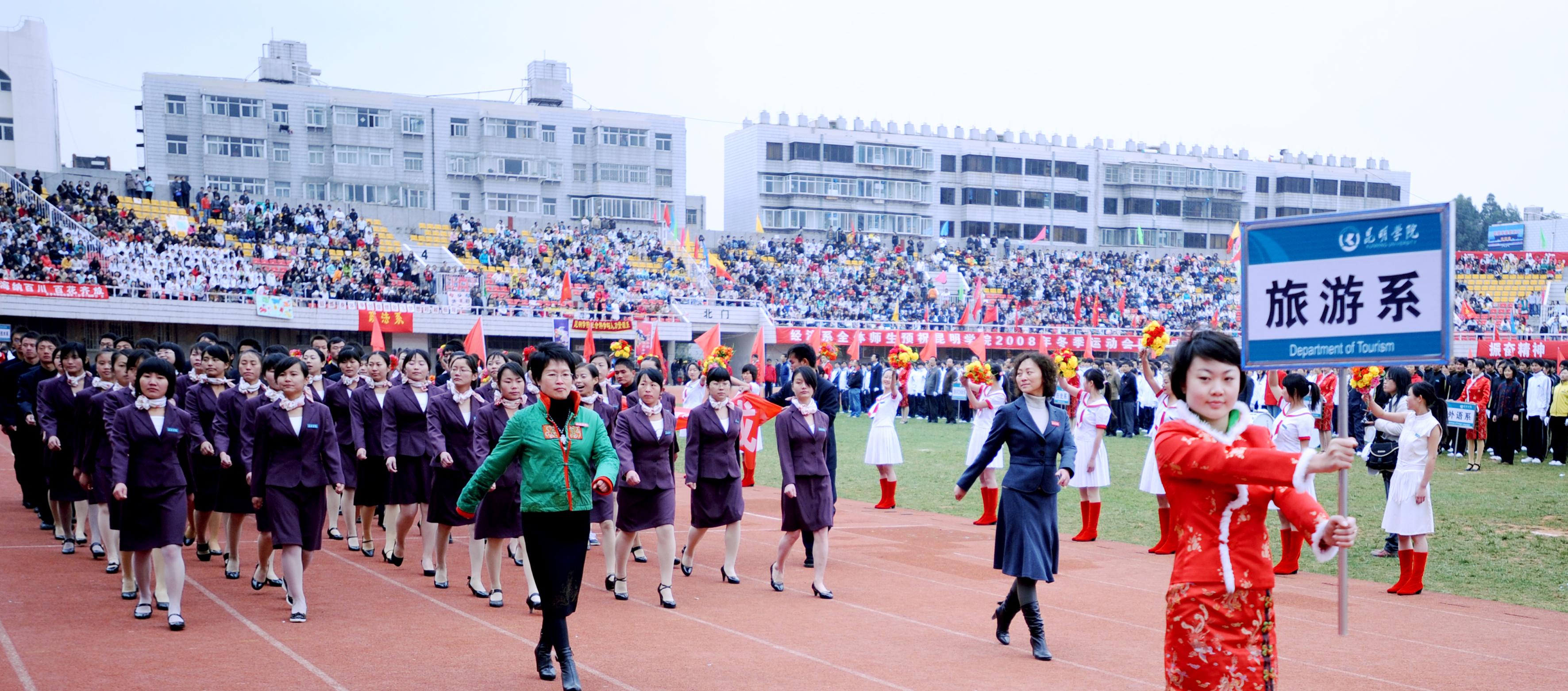 11月27日上午,我院14000多名师生欢聚一堂,在昆明市体育场隆重举行了2008年冬季运动会开幕式。开幕式邀请到了省教育厅体卫处梁北明处级调研员、市文明办张成贵常务副主任、云南大学、云南师范大学、昆明理工大学等在昆高校的体育学院(部)的领导出席,云南日报、昆明电视台、春城晚报等多家媒体到场报道。我院熊晶副院长主持开幕式。