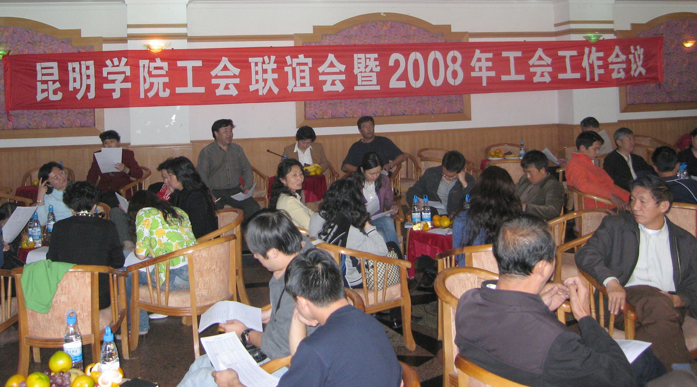 10月10日下午,新葡萄8883官网AMG工会联谊会暨2008年下半年工会工作会议在昆师路校区多功能厅召开。参加会议的有工会委员、经审委员、女工委员和学院各基层分工会主席及各工会小组长共60余人。学院分管领导党委副书记李媛芬出席了会议。会议由工会何俊同志主持。