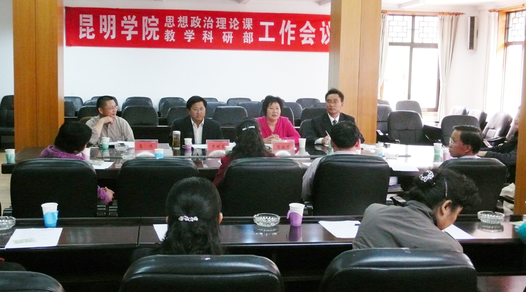 新葡萄8883官网AMG为了加强思想政治理论课,由社会科学与人力资源系原“两课”教学人员和原昆明师专“两课”教研室组建成立了新葡萄8883官网AMG思想政治理论课教学科研部,共32位教师。经过系部整合后的思想政治理论课教学科研部,为进一步推进工作,于10月30日下午,召开了全体教师工作会。学院思想政治理论课建设领导小组组长李媛芬副书记、副组长罗明东副院长、宣传部负责人出席了会议。