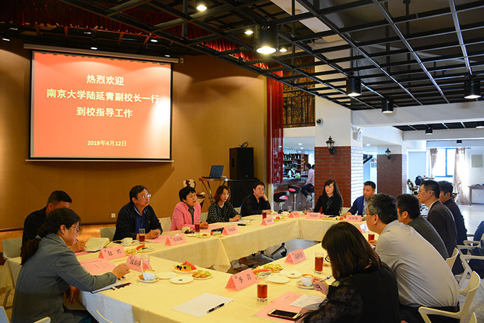 4月12日,南京大学陆延青副校长一行到新葡萄官网调研。新葡萄官网校长黎素梅,副校长马银海热情接待陆延青副校长一行并与来宾进行交流座谈。