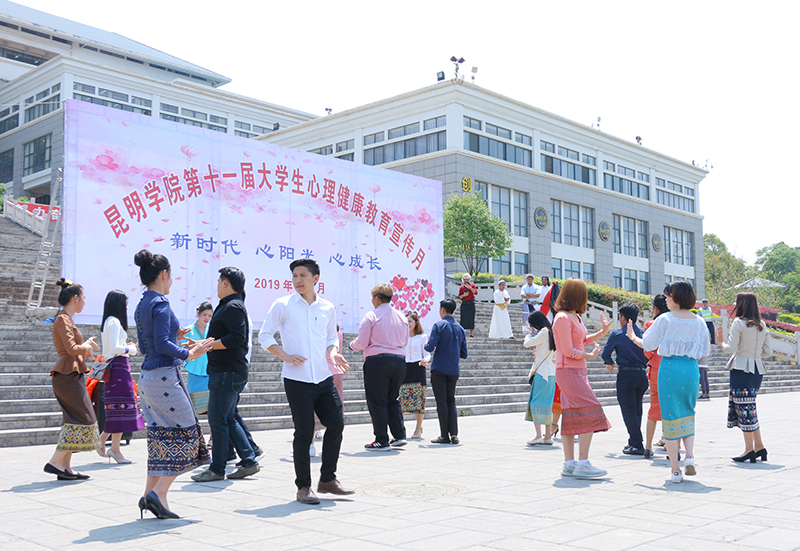启动仪式后,在身着民族服饰的留学生们的带领下,老师、同学在欢快的乐曲中开展排长队打跳活动,活动序幕正式拉开。现场折玫瑰、心理百科竞答、跳绳联欢、千足虫、信任游戏、过电网、编花篮七大活动同时进行,学生们自愿参与,并可通过游戏环节赢取奖品。